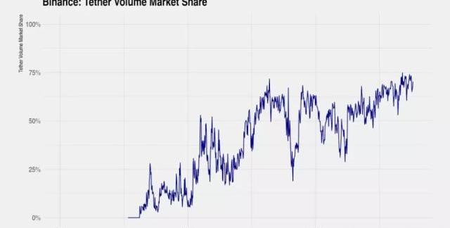 盡管監管審查越來越嚴格,并且針對Tether的訴訟越來越多,但它仍然是加密貨幣市場中至關重要的組成部分,而且其系統的重要性也在不斷增長。Tether交易量的市場份額最近在幣安上已接近75%,并顯示出長期增長的趨勢。
