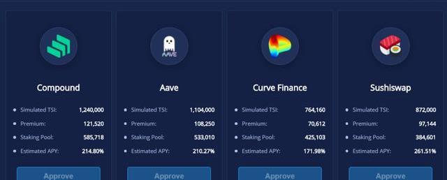NSURE持有人可以選擇不同的項目進行質押,獲得50%的保費收益,可承保金額為NSURE價值的2倍,單個項目最多承保可承保金額的25%。這其實和NexusMutual有類似的問題,如果需求旺盛,同樣有可能出現承保能力不足的問題。