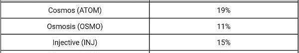而且這些收益相當可觀。ATOM和OSMO的質押年化收益率分別為19%和11%。以太坊的年化收益率約為4%,隨著驗證者數量的增加,它正在迅速下降。