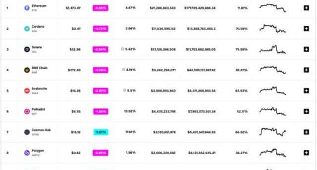 POS公鏈安全性的衡量指標包括公鏈Token的質押率以及該公鏈Token的市值。根據其他POS公鏈的質押數據大致可以估算一般情況下質押率應該處于30-70%的區間,而目前以太坊質押率僅為11.8%,因此對于質押賽道而言未來至少會迎來200%的增長。