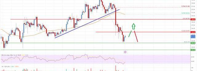 與比特幣類似,比特幣現金兌美元匯率從135美元區域下跌。如果跌破120美元,BCH/USD可能會大幅下跌。