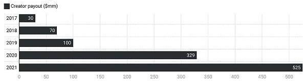 你可能想知道為什么我們在一個陌生的游戲中如此關心版權和支付。這是因為這些虛擬世界在未來是創作者的工作場所。僅在2021年,Roblox就向平臺上的創作者支付了超過5億美金。與OnlyFans同年向其平臺上的創作者支付的16億美元相差甚遠。但這表明,開發、培育和維護游戲體驗可能是未來的一種就業形式。