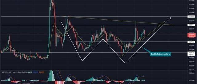 從理論上講,該模式是最常觀察到的反轉模式之一,鼓勵買家將當前的下降趨勢轉變為上升趨勢。因此,在這種模式的影響下,狗狗幣價格突破了0.1美元的心理阻力位,為交易者提供了做多的機會。