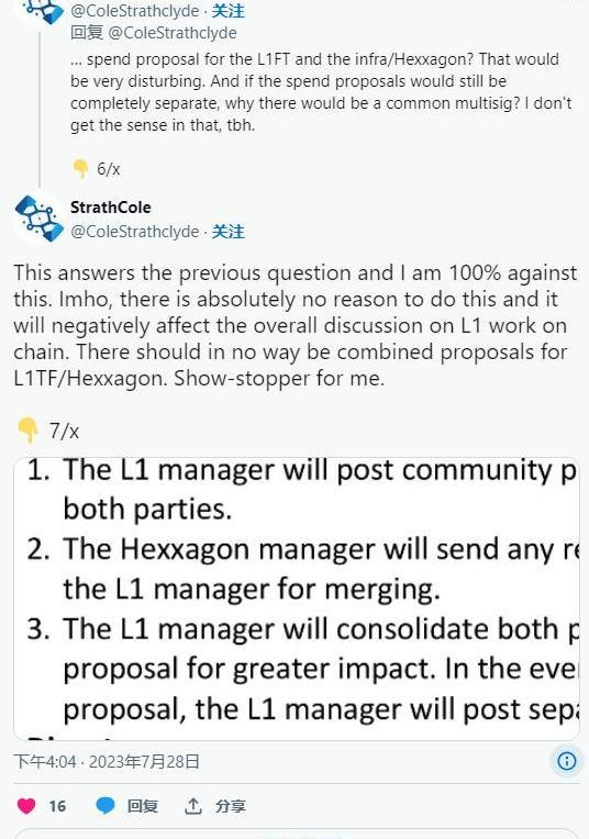 Hexxagon將有一名經理,并將直接與聯合L1特遣部隊經理合作,獨立管理而不干擾其他團隊。多重簽名錢包將確保資金安全,需要每個團隊至少2名成員的簽名。提案只能由L1TF經理提交。