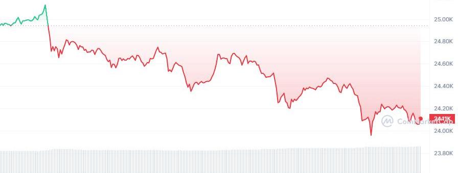 作為全球最大的加密貨幣,比特幣在過去24小時內下跌了3.33%,因此市值達到4653.1億美元。每個BTC的交易價格為24,110美元。在過去24小時內突破25k大關的加密貨幣再次出現回調。交易員對比特幣的大規模反彈感到欣喜若狂,但是,25k似乎是比特幣的阻力位。