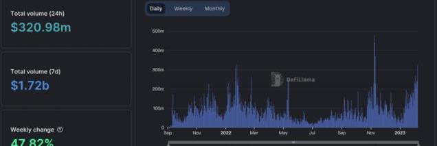 此外,DefiLlama的數據顯示,自2023年以來,Arbitrum上的DEX交易量一直在上升。
