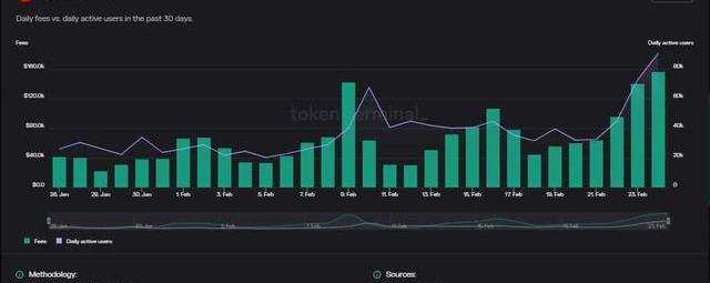 過去四天,鏈上日活躍用戶幾乎翻了三倍。