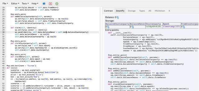 SmartPy是一個Python庫,而SmartPy.io讓用戶能夠在一個瀏覽器中執行Python腳本。Smartpy的官方網站提供了一個在線編輯器(https://smartpy.io/demo/),Dapp開發者可以直接用Python編寫代碼并編譯成Michelson智能合約,然后部署到Tezos主網上。其使用界面設計相比以太坊的Remix在線編輯器更簡潔明了,非常容易上手。Smartpy還自帶了一些現成的開發模版,方便開發者參考學習。
