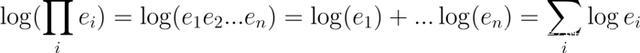 下一個觀點是,通過使用對數函數可以將乘積轉化為總和,這要歸功于等式: