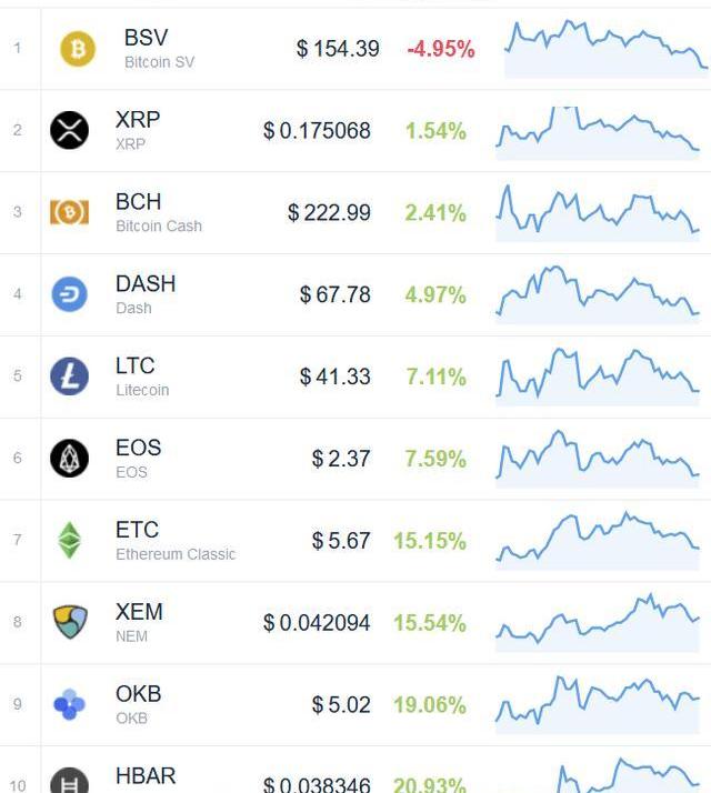 升值幅度最小的是XRP和BCH,在1.5%和2%之間。