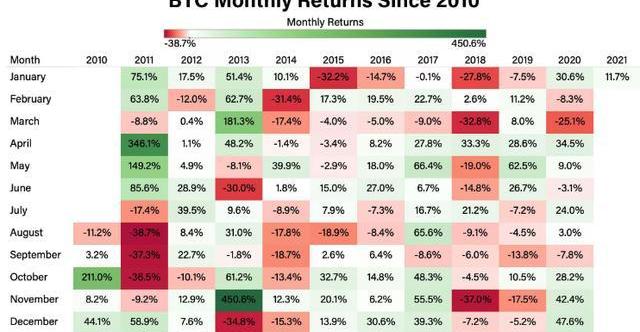 3月一直是比特幣表現最差的月份,自2017年市場開始回暖以來,比特幣平均虧損為14.725%。第二個糟糕的月份是9月份,在同一時間段內平均虧損9.05%。