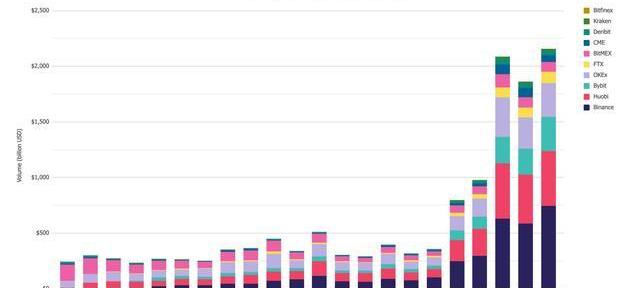 來源:bybt、TheBlockResearch三月份,比特幣期貨的月度交易量增長了15.9%,創下了2.16萬億美元的歷史新高。
