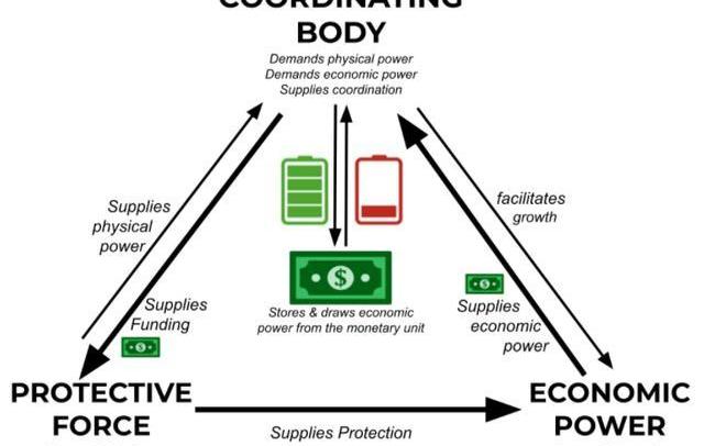 “貨幣”的創造(或選擇)是為了讓資源在整個經濟中流通,并且還使協調機構能夠吸取足夠的經濟能量來為其安全提供資金。