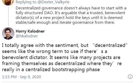 DeFi并非一直都是去中心化,許多主流平臺和項目都是由核心團隊來控制最初的開發。