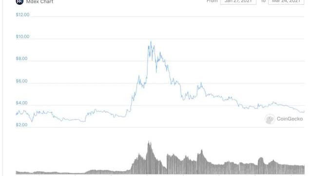 MDEX獨特的雙挖機制使得其剛剛上線Heco便迅速走紅,上線挖礦不到1小時內TVL便已超過4億美金,成為Heco鏈上交易量和TVL”雙料冠軍“。MDEX靠著亮眼的數據撐起了早期Heco生態的半邊天。MDX價格暴漲,一路從0.5美元最高漲至10.23美元。