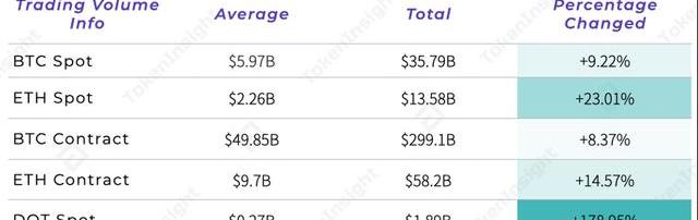 2020年12月第五周BTC、ETH、DOT現貨及永續合約成交量,截至12月31日早9點,來源:tokeninsight.com