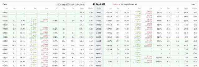 Deribit期權交易所最新比特幣期權價格,截至12月31日15:30,來源:deribit.com