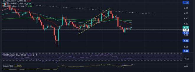 山寨幣的長期看跌走勢在5.8美元附近獲得支撐。雖然買家強調他們打算通過看漲吞沒燭臺來止血,但UNI爬回6美元大關上方。