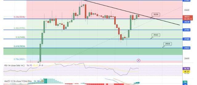 突破30,230美元大關的挑戰對BTC的上漲軌跡構成了重大障礙。然而,如果比特幣能夠突破30,250美元并保持收盤價高于該水平,價格可能會上漲至31,000美元的里程碑。