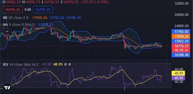 單日價格圖表的波動性非常大,這意味著在接下來的幾個小時內價格波動可能會增加。布林帶上軌為17,702美元,而布林帶下軌為16,398美元。相對強弱指數(RSI)得分今天已上升至指數48.95,因為它暗示了市場的購買活動。