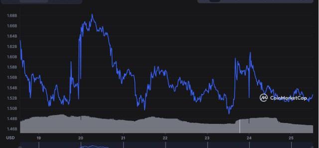根據CoinMarketCap的數據,截至10月25日,LUNC的市值為15.3億美元,比10月18日記錄的16.3億美元下降了1億美元。