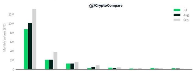 CryptoCompare的報告補充說,“在全球幾種貨幣走弱的情況下”,法定交易對的BTC現貨交易量也有所增加,并補充說BTC現貨交易量增加29.5美元至170萬BTC,同時交易至澳元、歐元和英鎊分別上漲65.1%、68.3%和233%。