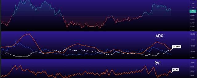 現在讓我們看看TrustWallet代幣(TWT)的平均方向指數(ADX)。它有助于衡量趨勢的整體強度。該指標是擴展價格范圍值的平均值。該系統嘗試使用帶有ADX的DMI指標來衡量價格在正面和負面方向上的運動強度。