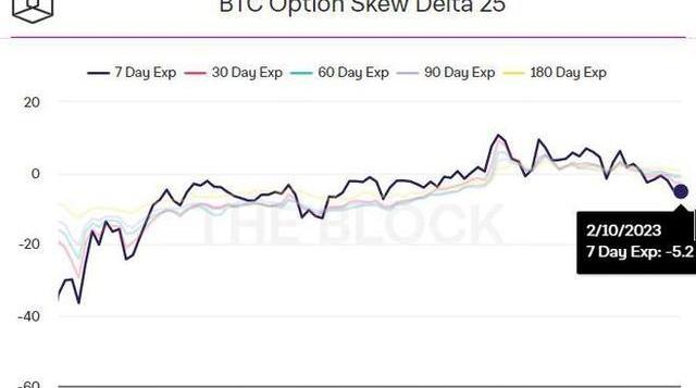 XRP/HKD-1.48%比特幣期權市場表明投資者情緒已創下今年新低,因為投資者面臨越來越多的擔憂,包括美國監管打擊的前景以及美聯儲貨幣政策前景可能更加鷹派。這是根據加密分析公司TheBlock提供的數據得出的,該數據顯示,廣受關注的7天內到期的比特幣期權25%的delta偏差在2月10日星期五達到了今年的最低水平。