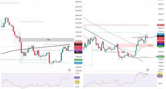 隨著BTC向上收集買方流動性,它可能會使許多賣空者無效。但是,將BTC推至近期低點23,516美元下方的快速逆轉也將使多頭頭寸失效。