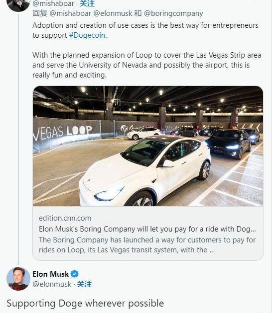 在CNN商業報道發布后不久,馬斯克在推特上表示,他將“盡可能”繼續支持$DOGE。