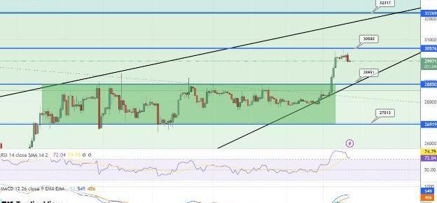 BTC/USD交易價格為30,268,24小時內上漲2.50%。隨著投資者加大對美聯儲將很快停止強硬政策的押注,最有價值的加密貨幣在十個月內首次達到30,000美元。