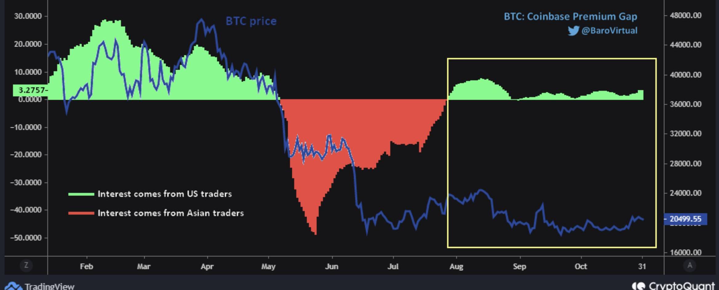 由于這些只是地址,因此多個地址也可能屬于一個實體。然而,最近幾周的一種模式脫穎而出。盡管亞洲市場的需求大幅下降,但美國投資者正在介入并增持比特幣。