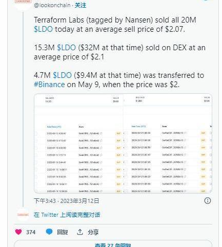 然而,LDO代幣最大的拋售之一是由TerraformLabs完成的。TerraformLabs最初在LDO上投資了200萬美元,并獲得了2000萬個LDO代幣作為回報。