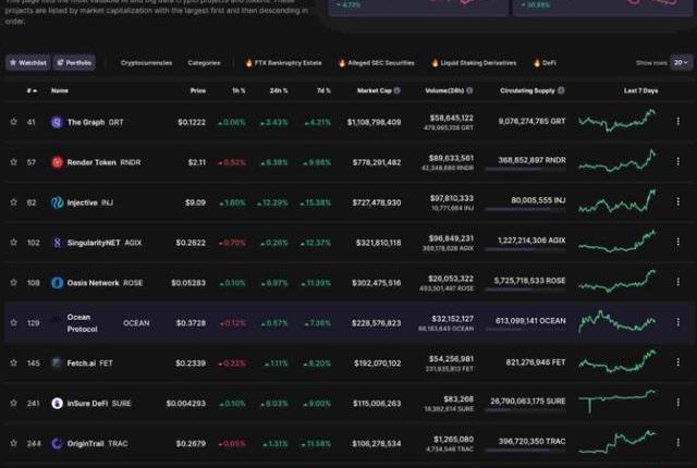XRP/HKD-1.46%在埃隆·馬斯克(ElonMusk)開創性地宣布他的新人工智能(AI)公司旨在與OpenAI的聊天機器人ChatGPT的顯著增長相媲美之后,與AI相關的加密貨幣在24小時內經歷了顯著的價值飆升。