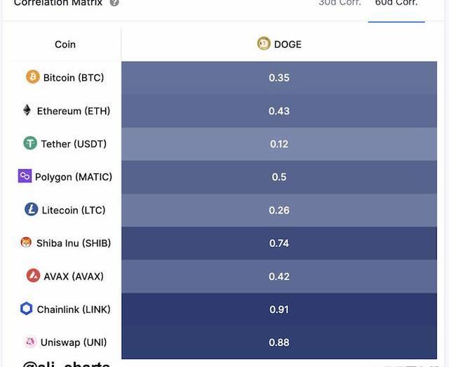 “過去一周,SHIB上漲了20%,但DOGE尚未反映這一走勢。鑒于它們的相關系數很高,密切關注狗狗幣可能是明智之舉。”