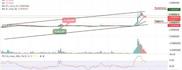 然而,可能的看漲走勢可能將市場推向通道內9天和21天的移動平均線,突破該水平可能會使狗狗幣價格達到700SAT及以上的高位,但相對強弱指數(14)正在下穿70水平,這表明市場可能經歷看跌走勢。