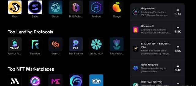 Solana世界上第一個網絡規模的開源區塊鏈協議,由于其運行速度快,手續費低,同時滿足一切去中心化應用程序創建所需要的安全性、反審查性以及成本效益,越來越多的開發者選擇了Solana公鏈,目前Solana承載了約500個去中心化應用程序,并且這一數字仍在穩步上升,涵蓋了DeFi、NFT、穩定幣、錢包、預言機等各位應用。除此之外,一大批已經成熟的項目,也在源源不斷地集成到Solana公鏈上,比如公鏈Terra、預言機Chainlink、數據檢索工具TheGraph等。