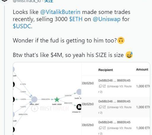 根據鏈上數據,以太坊聯合創始人VitalikButerin在FTX交易所崩潰后向UniSwap拋售了3,000ETH。鏈上分析工具Lookonchain提供了Buterin擁有地址的詳細信息和理由。