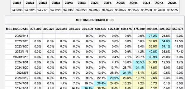 本周不只加密貨幣波動大,全球金融市場都在關注本周的各大經濟數據、與利率決議,美國、歐洲、日本都將在本周決定利率政策。上周澳洲、加拿大率先繼續升息,目前美國周四升息一碼的機率為21.8%,市場傾向這次不升息,而在7月或9月的利率決議升息最后一碼、結束本輪升息循環