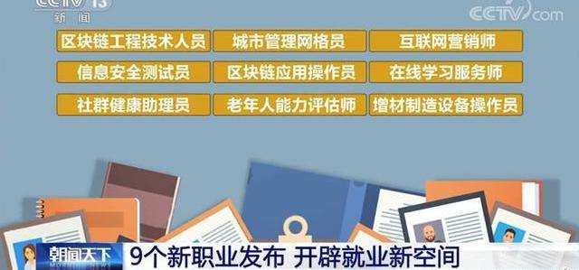 據央視新聞消息,今日,人社部聯合我國市場監管總局、我國統計局發布9個新職業,包括區塊鏈工程技術人員、城市管理網格員、互聯網營銷師、信息安全測試員、區塊鏈應用操作員、在線學習服務師、社群健康助理員、老年人能力評估師、增材制造設備操作員。