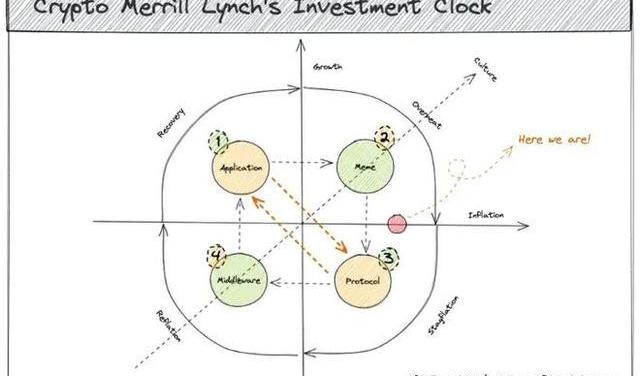 我們究竟身在何處?我們認為目前正處于滯漲期和過渡期的交匯點。當下經濟增長放緩,通脹幾乎見頂,如果2023年只能選擇關注一個板塊,那我們會毫不猶豫的關注協議層。這也是當下資本扎堆基礎設施投資的重要原因之一,無論是Danksharding,zkLayer2,Move雙雄或是Cosmos2.0,我們反而比以往任何年份更期待2023年加密世界協議層的發展。