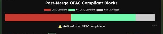 在美國外國資產控制辦公室(OFAC)于2022年10月11日規定所生產的ETH區塊合規后,OFAC區塊的數量上升至79%。符合OFAC的區塊使得驗證者排除涉及受美國財政部OFAC制裁的各方的交易。最初介紹時,它讓投資者害怕它可以使以太坊區塊鏈中心化,但在過去四個月中情況似乎發生了變化。