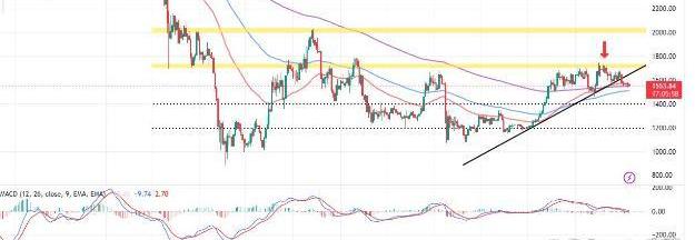 ETH是擁有第二大市值的加密貨幣,在1,500美元的支撐位上保持穩定。盡管如此,專家預測在即將到來的上海硬分叉之前不太可能出現反彈。
