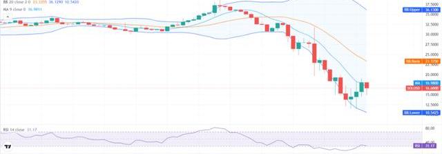 Solana價格分析表明,隨著價格下跌,目前的市場狀況顯示出看跌潛力。此外,市場的波動性隨著運動的增加而增加,這使得加密貨幣更容易受到任一極端的波動性變化的影響。因此,布林帶的上限位于36.1美元,是SOL的最強阻力點。相反,布林帶的下限為10.5美元,作為SOL的支撐點。