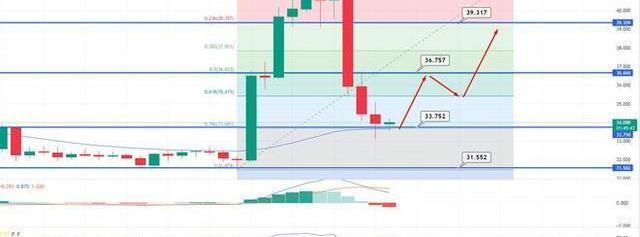 RSI和MACD等領先技術指標目前處于超賣區,表明賣家已經筋疲力盡,多頭可能入市。同時,50天移動平均線可能會在33.50美元處支撐ETC。