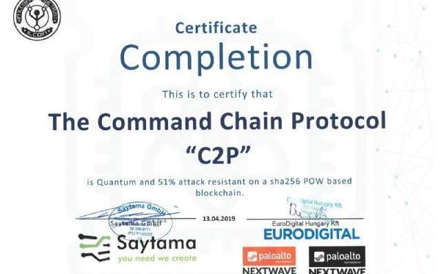 “PaloAltoNetworksPartner提供的證書,證明創新的C2P已成功通過網絡安全審核,確認了具有51%的量子攻擊抵抗能力。”