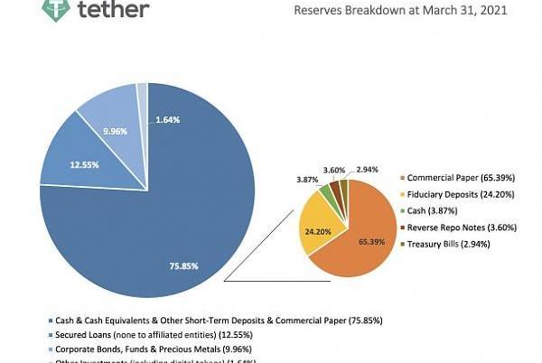 截至2021年3月,Tether的已支付資產,現金僅為3.87%