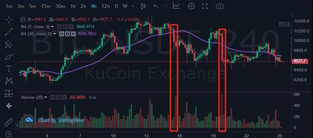 從BTC這個盤面來看,兩次的大跌大資金控盤的痕跡非常明顯,BTC先是出現急跌后慢慢反彈,這就是所謂的插針行情,在極短的時間內砸盤造成BTC價格突然下跌,目的就是爆掉多頭,所以在目前BTC震蕩行情下,最好以現貨為主,拿好手中的籌碼,遠離合約。如果一定玩合約,還是建議低杠桿,配置充足的保證金,這樣可以確保不被插針行情洗出市場。