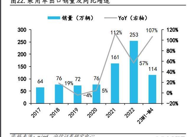 乘用車出口加速,零部件海外業務步入第二階段。憑借新能源與智能化技術實現歐美市場突破以及品牌地位的提升,中國車企出口加速,2022年出口量253萬輛同比+57%,2023年1-4月出口增速持續向上,我們預計2023年乘用車出口銷量有望達到381萬輛,同比增長51%。對于零部件企業而言,其海外業務的第一步即跟隨國內車企的乘用車配套出口及國內生產并出口到海外,前者的配套收入一般算作國內收入,不在公司的海外業務中統計,2022年零部件企業報表端海外收入占比29%,實際海外收入超過該值;后者為直接出口給海外主機廠或零部件廠,這部分直接在報表端的海外收入中統計;第二步即海外建廠配套,也是近年來零部件企業重點布局領域,真正做到產研銷全球化,零部件分板塊來看,輪胎輪轂領域的出海業務已經較為成熟,其他細分領域所處階段類似。