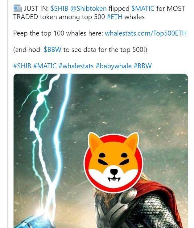 除此之外,根據WhaleStats的數據,ShibaInu在過去24小時內已經超過Polygon成為前500名ETH鯨魚交易的首選。